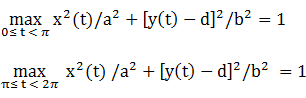Let t represent the usual parameter, ranging from 0 to 2π through the quadrants in counterclockwise order. In Quadrants I and II, the parametric equations of the segment arc are:![]()