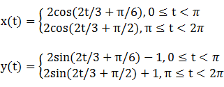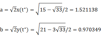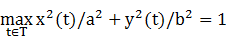 x(t)y(t) = 2cos(2t/3 + π/6)[2sin(2t/3 + π/6) - 1]This expression is maximized in the first quadrant at the complicated value