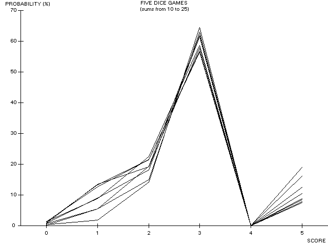 For the (5,6) Five Dice game, the 26 possible score distributions are listed horizontally as follows:![]()