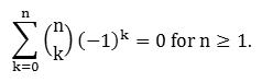 Proof. Let a = -1 and b = 1 in the Binomial Theorem:![]()