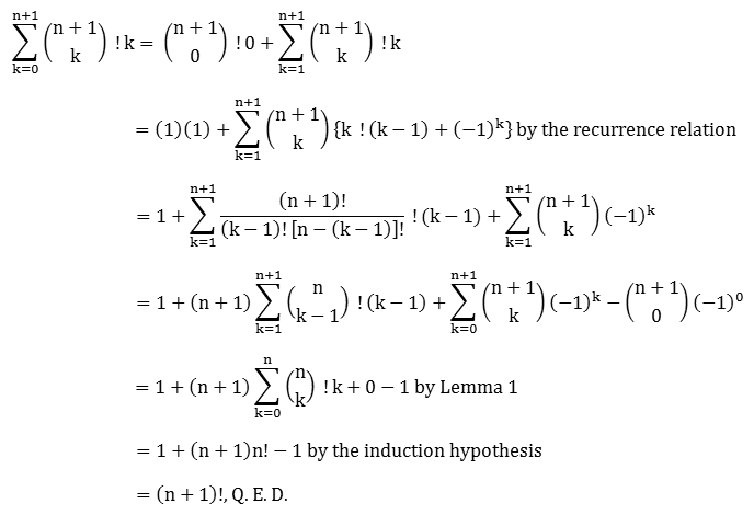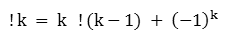 for nonnegative integers n, where ! k is the subfactorial of k.![]()