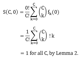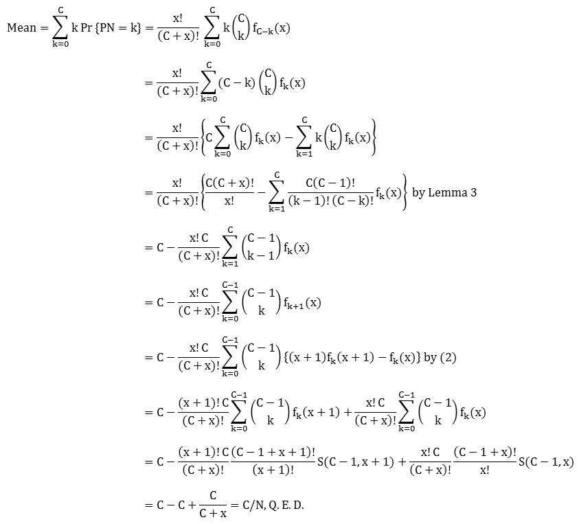 Noting that N!/(N-C)! = C! in this case, we can combine (1) with the immediately preceding results to obtain![]()