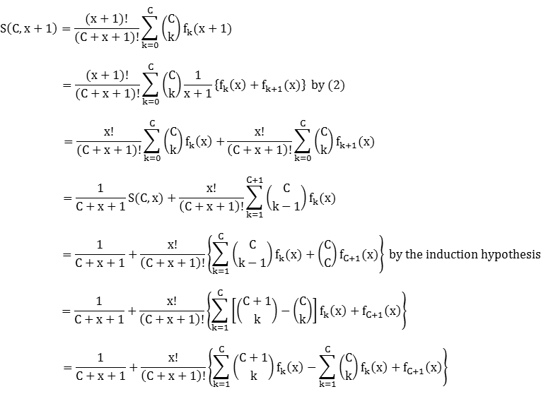 For proof by induction, assume S(C,x) = 1 for all C. Then![]()