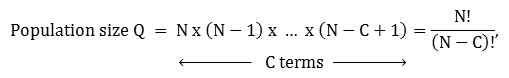 using factorial notation. For example, in the standard (4,6) game with non-repeated symbols, the population size is![]()