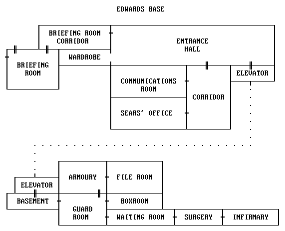After Captain Sears talks to you and leaves the office, pick up your ID file and a packet of cigarettes from the desk at right center. Quartermaster Quincy will then enter the office and give you your duty roster, which you in turn give to the adjutant outside Sears' office. Left on your own again, pick up a reel of film from the adjutant's desk. Go through the middle door of three, into the communications room.