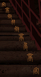 Click the Animal Sacrifice symbol on the right-hand mirror, causing the candles and incense burner to be lit. Move L F to the bells, on which symbols are now apparent since both objects have been brought to the altar. Click on the bells in the order given on the stairs: