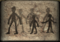 Note that a figure pointing to a red cave is lit in Row 2 of the Wall painting