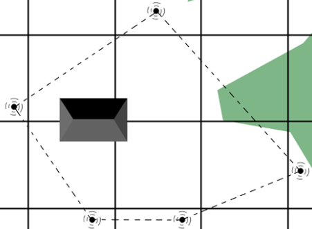 Examine the Sensor on a stand directly behind the firepit; this one is 90 degrees, which is consistent with the map above