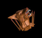 Turn away from the corpse and go aboard the boat. Turn left and you can see the corpse in the distance. Look down and be sure that the lever with the ankh on it is pulled forward toward you, which disables the boat moving backwards. Turn around and look down at a similar mechanism on the other side of the boat. Move the ankh lever into a vertical position, then look up and use the crank of the red handle four times. After the third time, you'll be attacked by the Water Ixupi and will lose some of your green health bar shown at the bottom of the screen. There's no way to avoid this attack, but you can make up the lost life essence later. At the other shore of the underground lake, exit the boat to the left and move F R F R. Click on the orange pot at the base of the girder to learn something of the museum's backstory from Professor Windlenot's ghost.