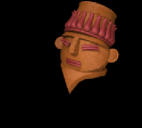 On entering this room, immediately turn right to a light-green effigy from a Congo witch doctor, in which an Ixupi may be lurking. In the main part of the room is a shaman with some drums. Take his bone hammer and use it to play the drum sequence seen earlier in the clock tower video display: