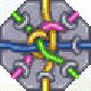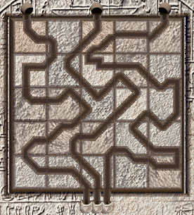 To reach this room, climb the stairs from Tombs and Curses to the rolling balls puzzle. The starting positions randomize each time the puzzle is played. Rotate the pieces to produce paths for 3 balls: