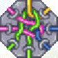 Back in the room, move R F3 R and click on the Alchemy Machine crate. Move F and click twice on the light-colored octagon to access the Alchemy Machine puzzle. Solving this puzzle provides access to a pot or lid.![]()