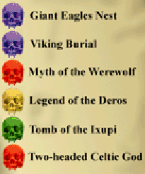 On entering the room and facing a green snake, a wooden Tiki statue at right may be harboring an Ixupi. Approach the snake, then move R F2 R F2 to a statue of Thor, which you may revisit later. Move L F3 to a two-headed Celtic sculpture. Since this is referenced in the Museum Brochure, the top color on the skull dial behind the sculpture should be set to red.