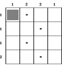 4 x 4 puzzle. One of the configurations of the 4 x 4 puzzle has a single block in the upper-left corner. It has the following arrow movement counts: