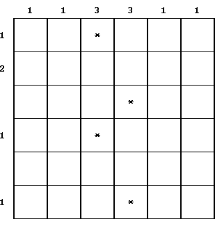 6 x 6 puzzle. One of the configurations of the 6 x 6 puzzle is without blocks. It has the following arrow counts: