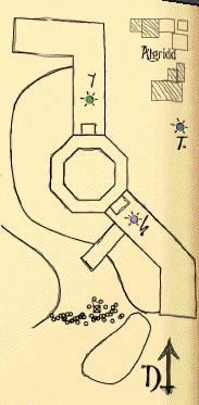 Turn right and proceed to the inverted Entrance platform (distinguished by what appears to be a green "tag" attached to one of the stones).