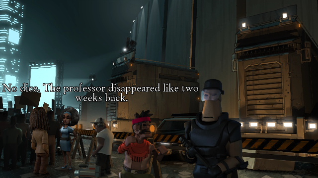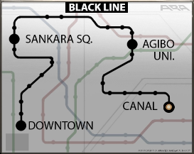 Go to the barricade behind Sankara Square (along the way, you can drop some Quarters into the Tip jar at the Fruit stand, if desired)