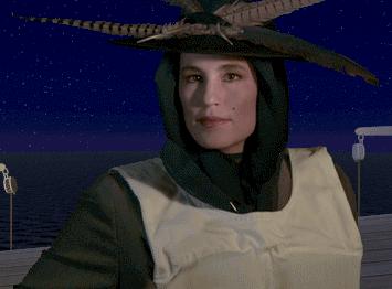 Another way to get on a lifeboat is to find the seaman with a goatee in the aft starboard area of the boat deck, and give him a boat pass (tarot card) to get on his lifeboat. This pass can be obtained from Buick Riviera (played by the game's Marketing Director) in the First-Class smoking room, reached via the Grand Staircase and First-Class Lounge. If you've talked to Riviera before, note his reference to "Diamondback, New Mexico" - site of the CyberFlix game DUST. Save your game before playing blackjack with Riviera. You need to win one hand of blackjack in order to obtain the boat pass. Offer the real diamond necklace as stakes for the game. You can use Hoyle's strategy to increase your chances of winning: