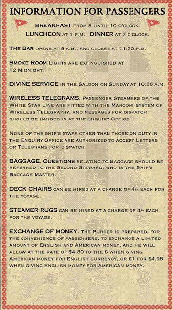 arrange for railroad cars to new york for pm departure to philadelphia 417Jump to the Grand Staircase on C Deck, then move R F O F O to the purser. Tell him you sent Thayer's telegram, then offer to tell the Thayers. While he goes off to tell the Thayers himself, take a look at the cargo manifest at the purser's window: