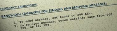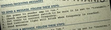 Jump to the Grand Staircase on the Boat Deck, then move L F R F2 L O F L O F R3 F2 R2 O F into the Wireless Room. Click on the table and look at the operating instructions in the half-open drawer: