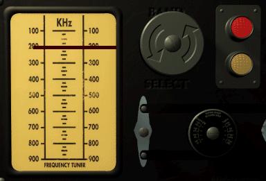 and rotate the knob with arrows several times until the red frequency line is set for the correct sending frequency (200 KHz) and the red light starts flashing. Click on the telegraph key