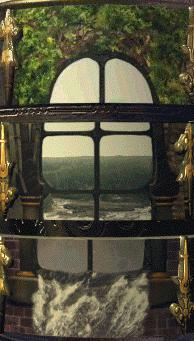 Finally, cross to the third pillar and arrange its images into the composite of three different windows: